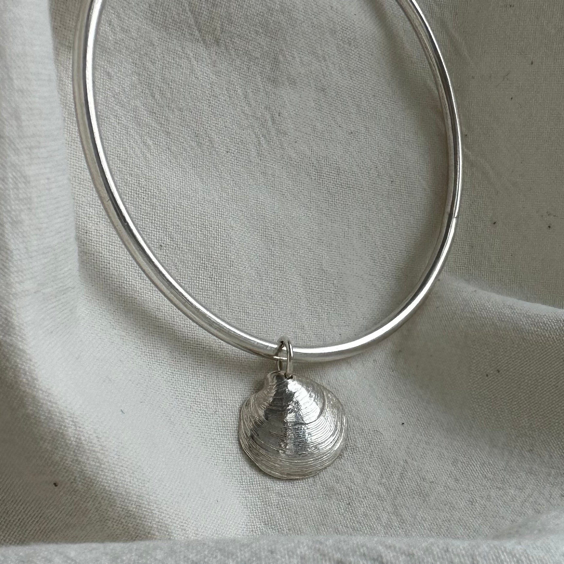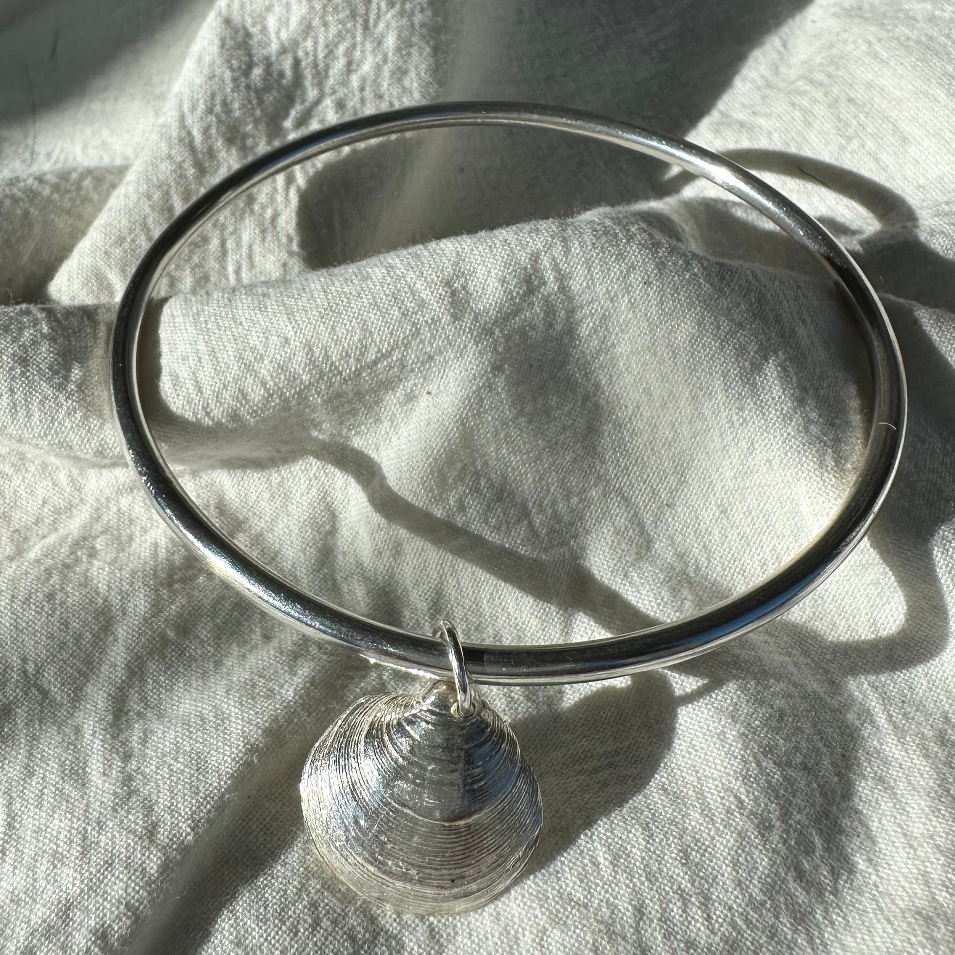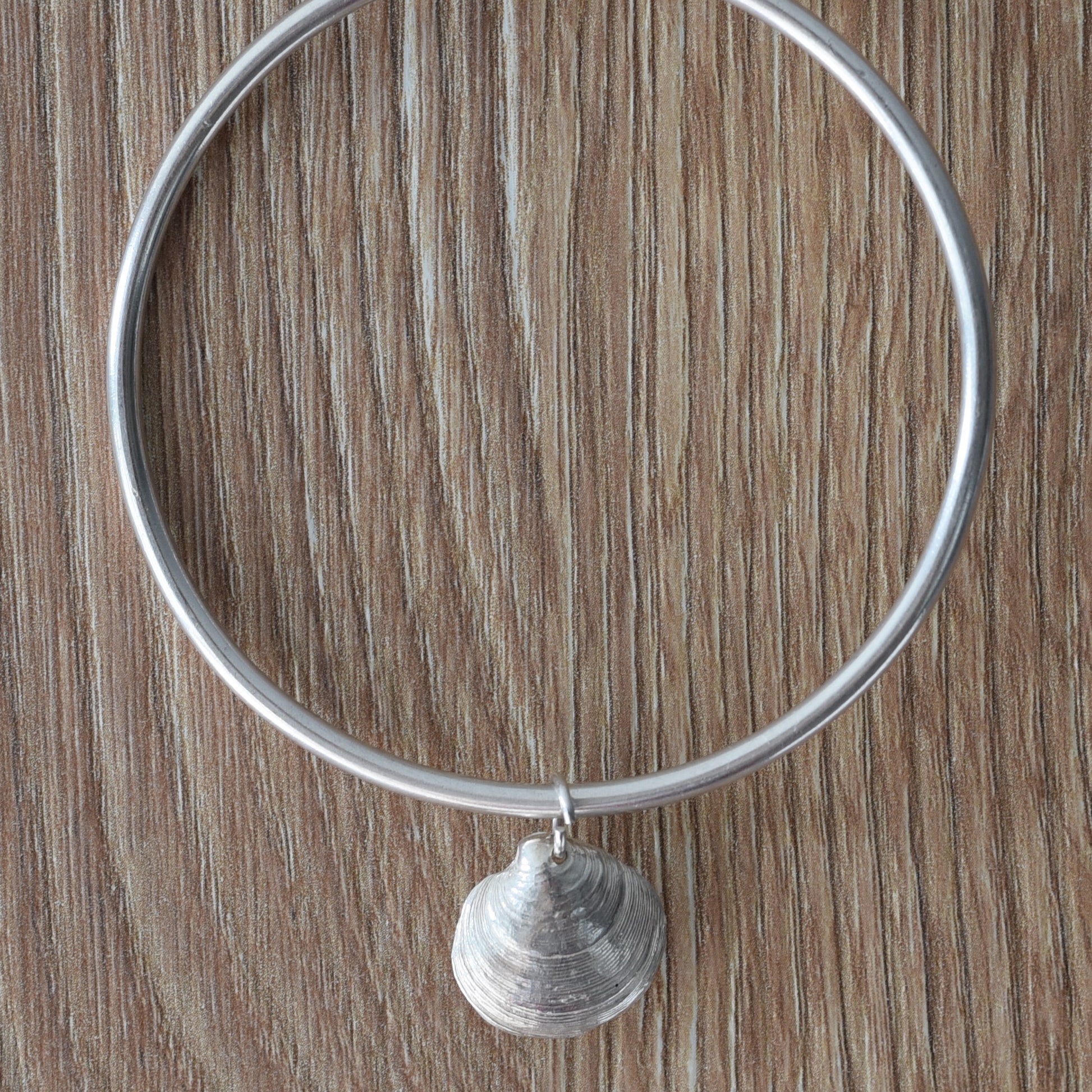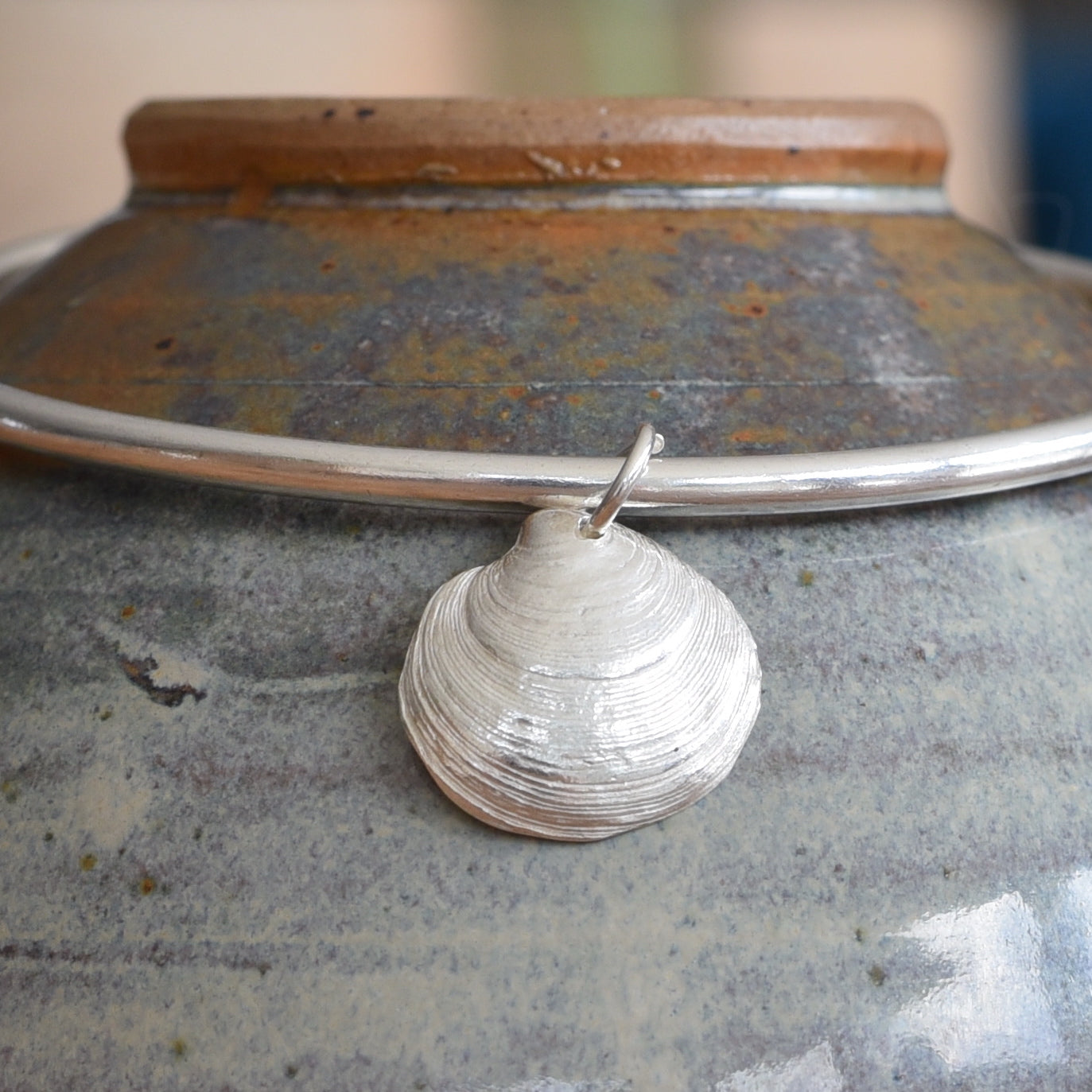 The delicate scallop is 1.6mm in length by 20 mm wide and made from fine silver.